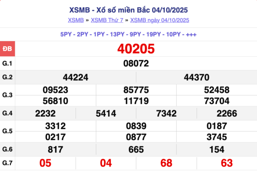 Chốt lô Miền Bắc đặc biệt ngày hôm nay 05/10/2025: